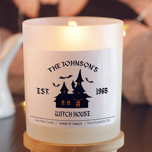 Personalized Witch House Halloween Candle Customizable Holiday Gift