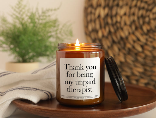 Thanks For Being My Unpaid Therapist Candle | Gift For Best Friend, Big Sister