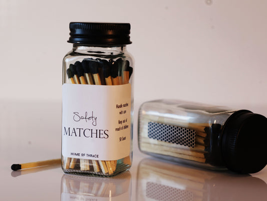 Luxury Glass Jar Safety Matches - 3” Black Tip Matches with Striker | Home of Thrace
