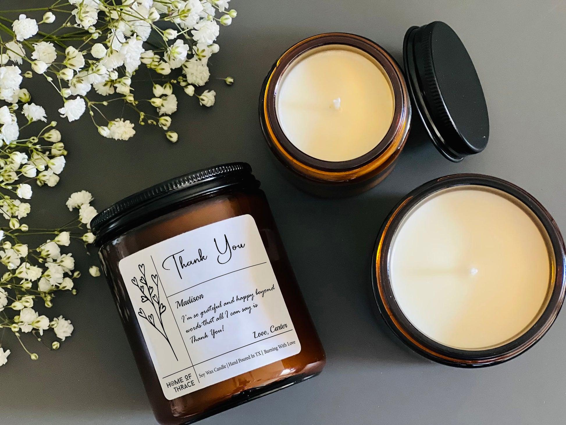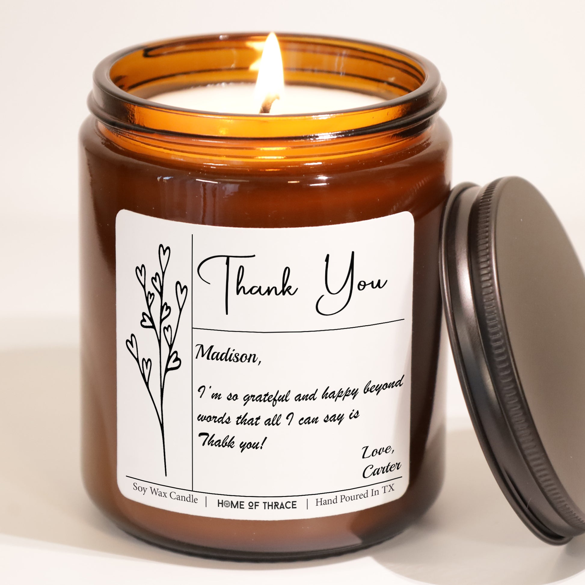 Thank You Personalized Message Gift Candle For Friend, Coworker, Client